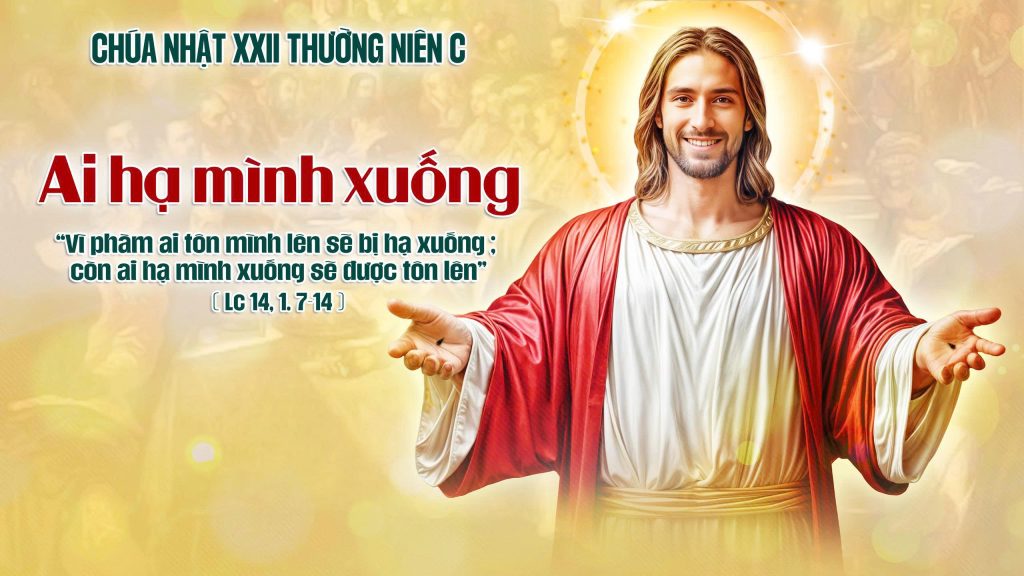 Lời Chúa Giê-su trong Tin Mừng hôm nay cũng phản ánh điều tương tự. Cần lưu ý, trong đoạn Tin Mừng này, Chúa Giê-su đã kể một câu chuyện dụ ngôn, khi quan sát người ta tranh nhau về chỗ ngồi. Người mời Chúa Giê-su đến nhà là một thủ lãnh Biệt phái (hay Pha-ri-siêu). Thực ra lời mời này cũng chỉ là dịp để những người Biệt phái dò xét và thử thách Người.