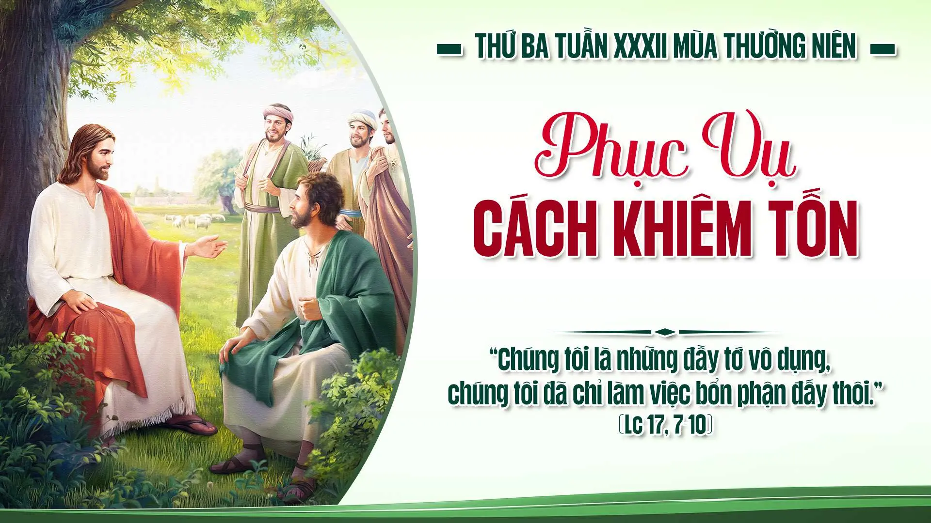 "Phần các con cũng vậy, khi các con làm xong mọi điều đã truyền dạy các con, thì các con hãy nói rằng: "Chúng tôi là đầy tớ vô dụng, vì chúng tôi đã làm điều chúng tôi phải làm".