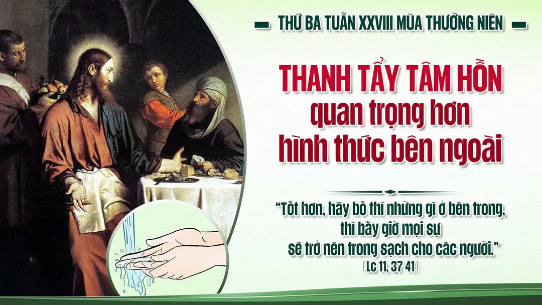 Khi ấy, lúc Chúa Giêsu còn đang nói, thì có một người biệt phái mời Người dùng bữa tại nhà ông. Người đi vào và ngồi bàn ăn. Nhưng người biệt phái ngạc nhiên, nghĩ trong lòng rằng tại sao Người không rửa tay trước khi dùng bữa.