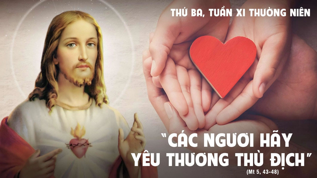 Lạy Chúa Giêsu, xin đổ tràn tình thương của Chúa vào tâm hồn chúng con để chúng con được giải thoát khỏi những tính toán, ích kỷ và biết mở lòng quảng đại yêu thương tất cả mọi người, ngay cả những ai chống đối, khinh thường hay làm hại chúng con. Xin giúp chúng con luôn nhớ rằng: khi yêu kẻ thù và cầu nguyện cho họ là lúc chúng con thật sự sống giống như Cha chúng con trên trời. Amen.
