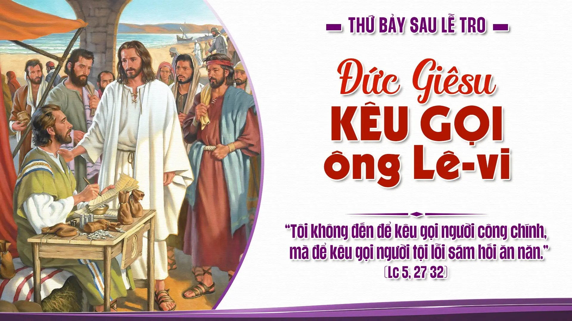 Khi ấy, Chúa Giêsu trông thấy một người quan thuế tên là Lêvi đang ngồi ở bàn thu thuế, Ngài bảo ông: “Hãy đi theo Ta”. Ông liền bỏ mọi sự đứng dậy theo Người. Lêvi đã dọn một bữa tiệc linh đình thết đãi Người tại nhà ông. Có đông người thu thuế và nhiều người khác cùng ngồi ăn với các ngài.