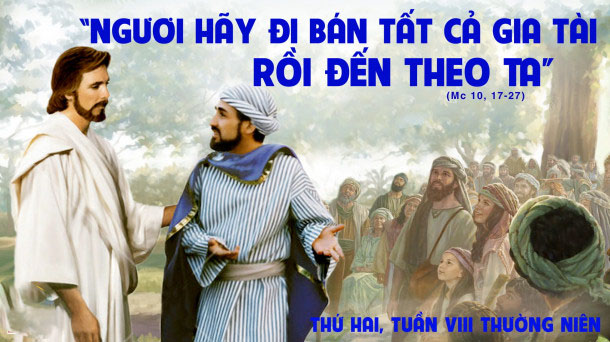 Bấy giờ Chúa Giêsu chăm chú nhìn người ấy và đem lòng thương mà bảo rằng: "Ngươi chỉ còn thiếu một điều là ngươi hãy đi bán tất cả gia tài, đem bố thí cho người nghèo khó và ngươi sẽ có một kho báu trên trời, rồi đến theo Ta".