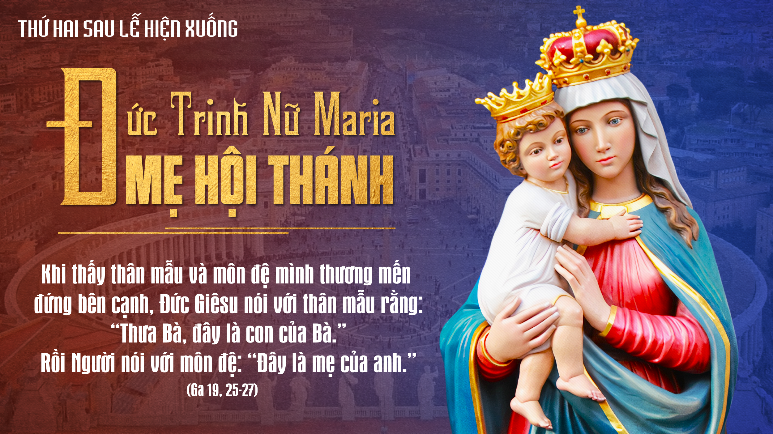 Người môn đệ “rước Mẹ về nhà mình”. Đây không chỉ là một hành động cụ thể nhưng còn là lời mời gọi dành cho mỗi người chúng ta hôm nay: hãy rước Mẹ vào đời sống, vào gia đình, vào trái tim mình. Mẹ sẽ dạy chúng ta yêu mến Chúa Giêsu hơn, trung tín hơn, can đảm hơn trong hành trình đức tin - nhất là khi phải đứng dưới “thập giá” cuộc đời.