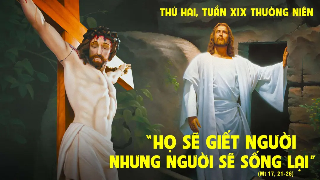 Khi ấy, các môn đệ và Chúa Giêsu còn đang ở Galilêa, thì Chúa Giêsu bảo các ông rằng: "Con Người sắp bị nộp vào tay người đời, họ sẽ giết người, nhưng ngày thứ ba, Người sẽ sống lại". Các môn đệ rất đỗi buồn phiền.