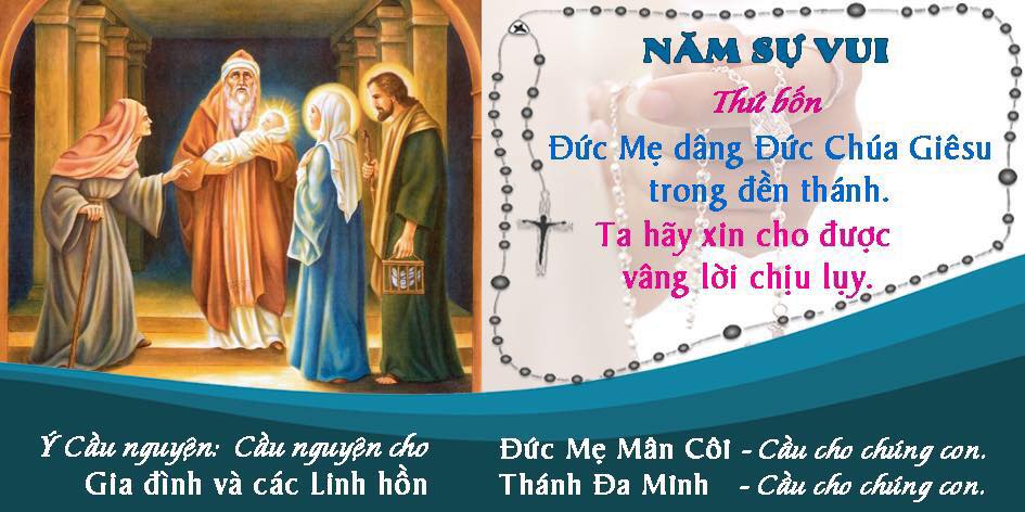 Khi tìm thấy được Chúa trong Đền Thánh, Đức Mẹ vui mừng khôn xiết. Còn về phần Chúa, Chúa vui mừng lo việc của Chúa Cha (xc. Lc 2,41-50). Xin cho người tín hữu chúng con, luôn trung thành sống theo đường lối của Chúa, với niềm hân hoan và xác tín rằng Chúa chọn chúng con làm gia nghiệp và làm con dân của Chúa, như lời Thánh Vịnh: