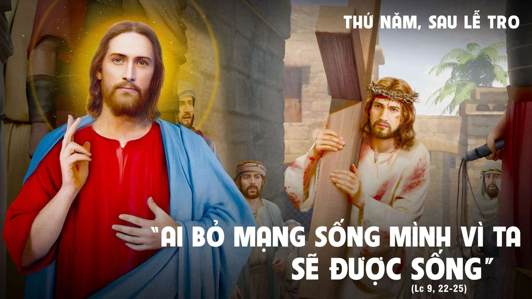 Chúa nói với mọi người rằng: “Ai muốn theo Ta, hãy bỏ mình, vác thập giá mình hằng ngày mà theo Ta. Vì chưng, ai muốn giữ mạng sống mình, thì sẽ mất; còn ai mất mạng sống vì Ta, sẽ được sống. Vậy nếu con người được lời lãi cả thế gian, mà phải thiệt mất mạng sống, thì được ích gì?”