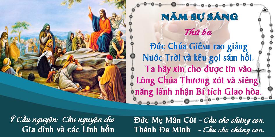 (Đọc: 1 Kinh Lạy Cha, 10 Kinh Kính Mừng, 1 Kinh Sáng Danh, Lời Nguyện Fatima).