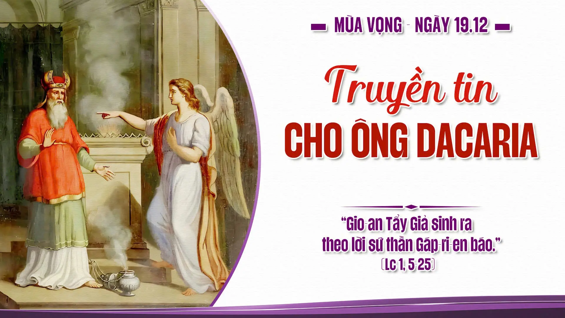 Bài Tin mừng hôm nay kể biến cố thiên thần Gabriel hiện ra báo tin cho ông Dacaria rằng vợ ông, bà Êlizabeth, sẽ sinh con, dù hai ông bà đã cao tuổi và son sẻ lâu năm. Đứa con ấy chính là Gioan Tẩy Giả, vị ngôn sứ dọn đường cho Chúa Giêsu.
