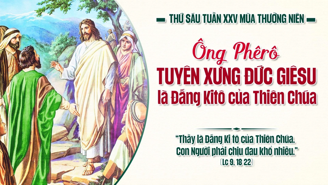Tiếp theo, Người đặt câu hỏi quan trọng hơn: “Còn anh em, anh em nói Thầy là ai?”. Đây là câu hỏi vượt thời gian, dành cho mỗi người chúng ta hôm nay. Ông Phêrô đã mạnh mẽ tuyên xưng: “Thầy là Đấng Kitô của Thiên Chúa”. “Đấng Kitô” nghĩa là Đấng được xức dầu, Đấng Cứu Thế được sai đến để cứu độ nhân loại. Tuy nhiên, Đức Giêsu dặn các ông không được nói với ai, vì chưa phải lúc công khai mầu nhiệm này. Người còn báo trước Con Người sẽ phải chịu đau khổ, bị loại bỏ, bị giết chết và ngày thứ ba sẽ sống lại (x. Lc 9,21-22).