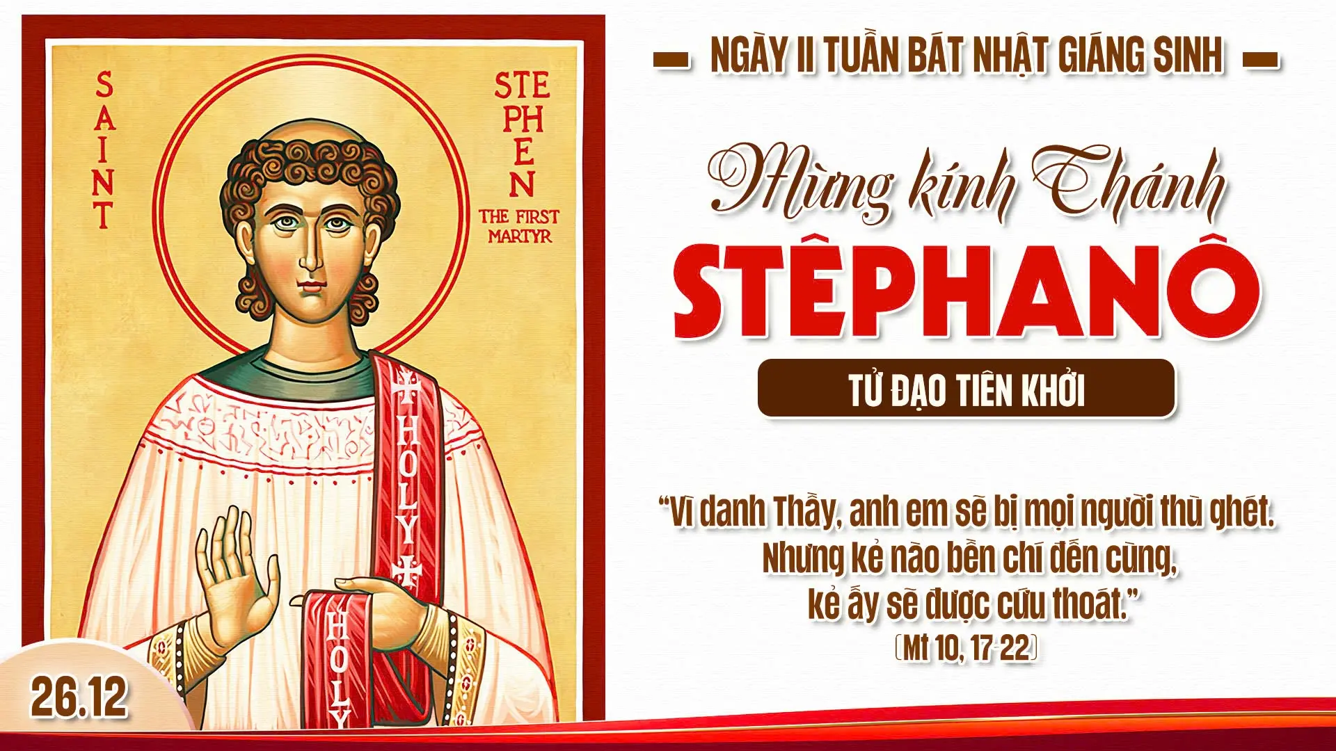 Trong bầu khí hân hoan của Mùa Giáng Sinh, Giáo hội lại mừng kính thánh Stêphanô, vị tử đạo tiên khởi. Điều này không nghịch lý, nhưng rất sâu xa: khi Đức Giêsu đến thế gian đem bình an và tình yêu, thì thánh Stêphanô là chứng nhân đầu tiên cho thấy tình yêu ấy có sức mạnh chiến thắng cả hận thù và cái chết. Hoa trái đầu mùa của mầu nhiệm Nhập thể chính là một con người dám hiến mạng vì Thầy mình.
