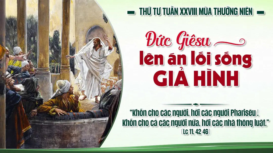 Qua trang Tin mừng chúng ta vừa nghe, thánh Luca lại cho chúng ta thấy được lối sống giả dối của những người Pharisiêu và của các nhà Thông luật. Họ sống như vậy Chúa Giêsu không thể chấp nhận được nên Người đã thẳng thắn phê phán thái độ sống của họ. Như trang Tin mừng đã viết: “Khốn cho các người, hỡi các người Pharisêu! Các người nộp thuế thập phân về bạc hà, vân hương, và đủ thứ rau cỏ, mà xao lãng lẽ công bình và lòng yêu mến Thiên Chúa. Các điều này phải làm, mà các điều kia cũng không được bỏ. Khốn cho các người, hỡi các người Pha-ri-siêu! Các người thích ngồi ghế đầu trong hội đường, thích được người ta chào hỏi ở nơi công cộng”.
